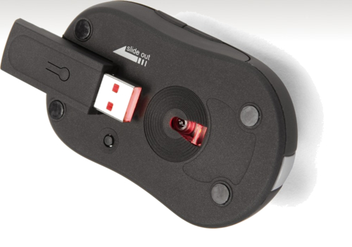 Mit der Stow präsentiert der Accessoire-Vertrieb Dicota eine Notebook-Maus, die laut Hersteller besonders „trickreich“ ist. Denn der USB-Funkempfänger der kabellosen Maus kann ach Gebrauch an der Unterseite der Maus sicher verstaut werden. Dieses Feature ist zwar nicht wirklich neu oder innovativ, hat aber unleugbar einen hohen Praxisnutzen. Zum einen sinkt damit die Gefahr, den kleinen USB-Empfänger zu verlieren, nahezu auf Null – vorausgesetzt, man erinnert sich immer daran. Zum zweiten schaltet sich die Maus automatisch aus, sobald der Empfänger an der Unterseite platziert ist. Der Effekt liegt auf der Hand: Man spart, wer hätte es gedacht, Strom, und die Batterie der Stow hält länger.