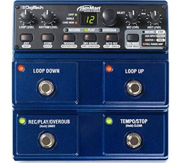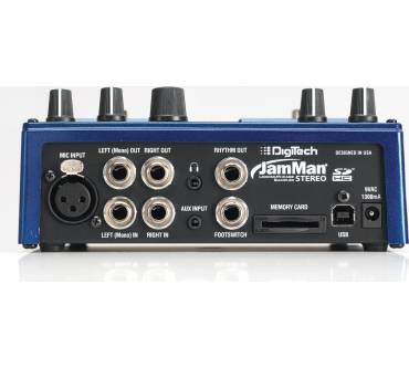 Stärken und SchwächenMit 99 speicherbaren Loops, der Möglichkeit das Tempo der Loops zu erhöhen oder zu verlangsamen ohne die Tonhöhe zu verändern sowie der Aufnahmekapazität von 35 Minuten in CD-Qualität ist der Looper ein mehr als eindrucksvolles Arbeitsgerät. Features wie die drei verschiedenen Stop-Modi oder die Reverse Funktion bringen ein deutliches Plus an Möglichkeiten mit sich und lassen kaum Wünsche offen. Dank des Slots für SD-Karten kann die Aufnahmekapazität des Loopers auf bis zu 16 Stunden und der Speicherplatz um weitere 99 Loops erweitert werden. Es scheint, DigiTech hätten hier an wirklich alles gedacht. Trotz der zahlreichen Funktionen ist die Bedienung einfach und intuitiv gehalten. Mit insgesamt vier Fußschaltern können die für den Live-Betrieb relevantesten Funktionen ohne Zuhilfenahme der Hände gesteuert werden – mehr Bewegungsfreiheit geht schlichtweg nicht. Der Looper kann sowohl in Mono als auch in Stereo betrieben werden – entsprechende 6,3mm Klinken-Eingänge befinden sich auf der Geräterückseite. Ein USB-Port, ein Kopfhöreranschluss wie auch ein AUX-Eingang für den Anschluss eines MP3-Players stehen ebenso zur Verfügung. Das solide Metallgehäuse verspricht eine lange Lebensdauer.