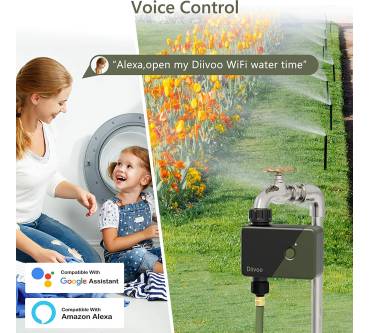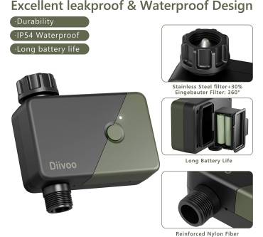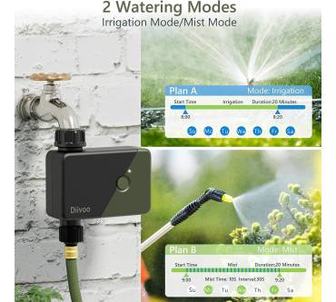 Der WT-07W von Diivoo ist eine bedienerfreundliche Möglichkeit, Ihren Garten zeitgesteuert und gezielt zu bewässern. Sie können 6 getrennte Bereiche definieren und über die dazugehörige App steuern. Das Gerät ist mit den Sprachdiensten Alexa und Google Assistent kompatibel, was die Bedienung noch komfortabler macht. Ist eine Regenperiode angesagt, setzen Sie den Plan für bis zu 3 Tage aus. Allerdings müssen Sie das manuell direkt am Gerät einstellen. Neben dem klassischen Beregnen gibt es einen Modus für Vernebelung - praktisch bei trockener Luft oder viel Staub. Die Programmierung ist auch für Laien leicht zu managen, einige Nutzer berichten aber von Aussetzern bei der App. Derzeit bekommen Sie den Diivoo schon um erschwingliche 70 Euro.