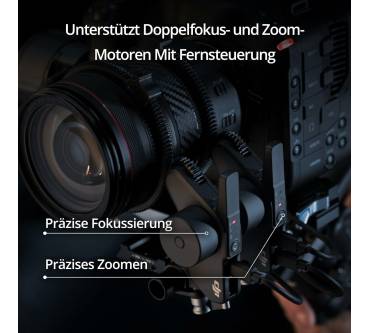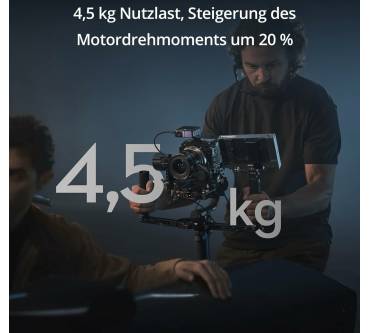 Dank der Teflonbeschichtung wird die Reibung beim Ausbalancieren der Kamera minimiert, was eine millimetergenaue Abstimmung ermöglicht. Der Gimbal hat eine maximale Tragkraft von 4,5 Kilogramm und verlängerte Neigungsachsen für optimale Stabilität. Die Bedienung des Gimbals erfolgt intuitiv über den OLED-Touchscreen, der eine einfache Modiauswahl und -sperrung ermöglicht. Der DJI RS 4 Pro bietet verschiedene kreative Modi wie First Person View, Track, Motionlapse und Panorama. Die „Dual-Mode-Bluetooth"-Technologie erlaubt die Steuerung von Kameraverschluss und Objektivzoom, ohne nach jedem Start erneut aktiviert werden zu müssen. Im Test überzeugt der Gimbal, der sich vor allem für "High-End-Produktionen" eignet. Optionales Zubehör wie der DJI RS BG670 Akkugriff mit bis zu 29 Stunden Betriebsdauer erweitert die Funktionalität des DJI RS 4 Pro Combo.
