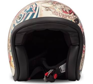 Der DMD Vintage Jethelm kombiniert klassischen Stil mit modernen Sicherheitsstandards. Die Außenschale aus Fiberglas sorgt für optimalen Schutz bei gleichzeitig geringem Gewicht. Er erfüllt die ECE 22/06 Sicherheitsnorm, was höchste Schutzstandards für Motorradfahrer garantiert. Das herausnehmbare und waschbare Textil-Innenfutter ermöglicht eine einfache Reinigung und hygienische Nutzung. Der Doppel-D-Verschluss gewährleistet einen sicheren Sitz und lässt sich präzise an die individuelle Kopfform anpassen. Erhältlich in den Größen XS bis XL.