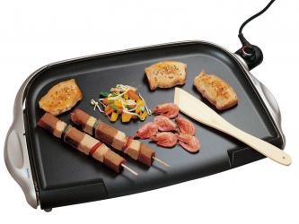 Ein fettfreies Grillen ermöglicht der Plancha Grill CV 302 von Siméo. Das Gerät hat eine angeschrägte Grillfläche, durch die das Fett restlos in die Fettauffangschale ablaufen kann. Die Leistungsaufnahme des Gerätes beträgt 1800 Watt, durch die in die Grillplatte integrierten Heizelemente wird eine kurze Zubereitungszeit erreicht. Außerdem kann sich die Hitze auf der gesamten Platte gleichmäßig verteilen.