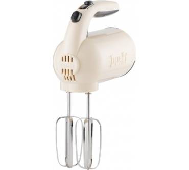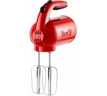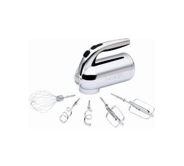 „Bulle ohne Ausdauer. Handrührer in Edelstahloptik, mit dem Charme der Sixties. Gehäuse aus Kunststoff, aber schwer: fast 1,4 Kilo. Das bullige Äußere täuscht: Der Dualit hält nicht, verendet früh im Belastungstest. Laut. Netzkabel kurz, mit Aufwicklung.“