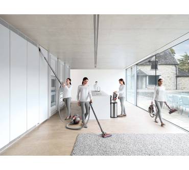 Mit etwa 500 Euro im Online-Handel ist der Bodenstaubsauger Cinetic Big Ball Absolute 2 von Dyson natürlich alles andere als billig. Dafür bekommt man hier aber einen ziemlich ausgereiften und hochwertigen Sauger präsentiert. Die Saugleistung ist recht stark und sollte für jede Verschmutzung auf Hartböden und Teppichen vollkommen ausreichen. Sogar Tierhaare können mit Hilfe der Mini-Turbo-Düse effektiv entfernt werden. Lediglich Hochflorteppiche werden nicht komplett gereinigt. Manchmal saugt sich die Düse aufgrund der hohen Saugleistung sogar am Teppich fest und kann nur schwer bewegt werden. Die Bedienung ist dagegen äußerst komfortabel. Positiv ist auch, dass sich der Staubsauger wieder selbstständig aufrichtet, wenn er mal versehentlich umgestoßen wird.