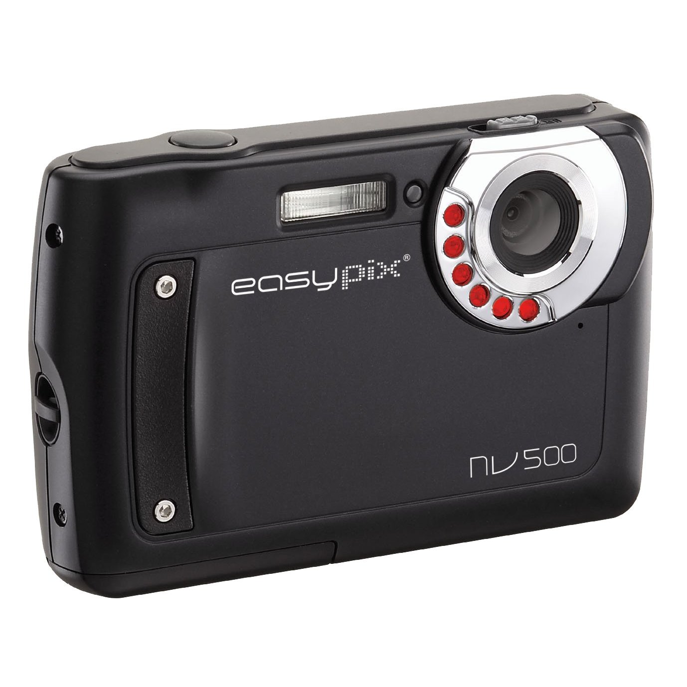 Mit der kompakten NV500 NightVision sollen dunkle oder überbelichtete Nachtaufnahmen laut Hersteller Easypix der Vergangenheit angehören. Das Gerät ist nämlich mit einem Infrarot-Sensor ausgestattet und funktioniert daher auf den ersten Blick wie eine herkömmliche Nachtüberwachungskamera. Der 1/3.2 Zoll CMOS-Sensor des Modells ist jedoch viel größer als Chips, die gewöhnlich bei Überwachungskameras zum Einsatz kommen. Dadurch sind Fotos mit einer Auflösung von bis zu 5 Megapixeln möglich.