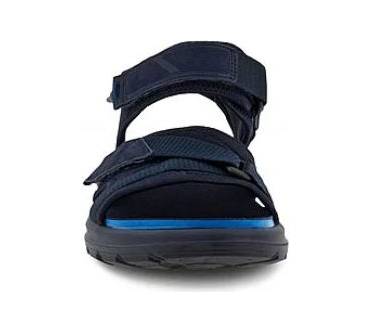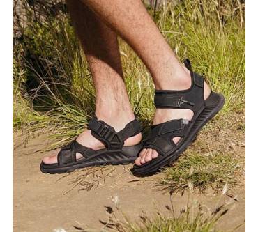 Die Exowrap von Ecco ist eine klassische Sportsandale für Damen und Herren. Sie können die Passform an drei Klettverschlüssen über den Zehen und dem Spann sowie an der Ferse verstellen. Die meisten Kundinnen und Kunden empfinden den Tragekomfort als angenehm und die Passform als stabilisierend. Einige Rezensentinnen und Rezensenten beschreiben die Passform allerdings als ziemlich lang und breit. Auch der Look wird von einigen als etwas zu klobig empfunden. Dennoch hat die Sandale viele Fans unter Wanderinnen und Wanderern. Sie können die Outdoorsandale für unkomplizierte Wanderungen auf einfachen Wegen sowie bei Spaziergängen im Sommer oder im Alltag verwenden. Die Produktbezeichnung bei Ecco ist teilweise etwas missverständlich, denn es gibt noch eine ähnliche Sandale mit gleichem Namen, aber Klickverschlüssen anstatt Klettverschlüssen.