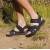 „Die robuste Komfortsandale umschließt den Fuß fest und doch kuschelig weich, schützt den Fuß beim Gehen optimal und ist rutschfest auf festem Untergrund, aber relativ schwer und weniger luftig. Optimal für holprige oder feuchte Pfade sowie Straßen; weniger für erdige Pfade oder heiße Tage.“