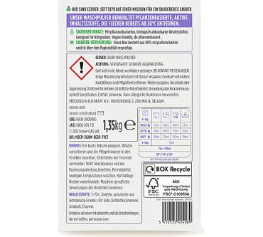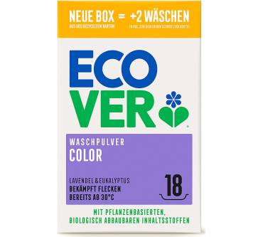 Ecover Waschpulver Color Lavendel & Eukalyptus ist ein umweltfreundliches Waschmittel, das speziell für Buntwäsche entwickelt wurde. Es entfernt effektiv Flecken und schützt die Farben, selbst bei niedrigen Waschtemperaturen ab 30 °C. Die pflanzlichen und biologisch abbaubaren Inhaltsstoffe machen es hautfreundlich und vegan. Der angenehme Duft von Lavendel und Eukalyptus verleiht der Wäsche eine frische Note. Eine Packung mit 1,35 kg reicht für etwa 40 Waschladungen. Das Produkt ist frei von Phosphaten, Palmöl und Mikroplastik, was es zu einer nachhaltigen Wahl für umweltbewusste Verbraucher macht.