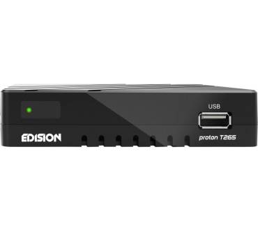 „Der kleine schicke Edision Proton T265 bringt Ihnen alle frei empfangbaren TV- und Radioprogramme aus dem Kabelnetz und von der Dachantenne nach Hause. Dabei zeichnet sich der Receiver durch schnelle Umschaltzeiten, eine übersichtliche Menüführung und bester Bild- und Tonqualität aus. Dank USB-Schnittstelle lassen sich auch eigene Medieninhalte abspielen ...“