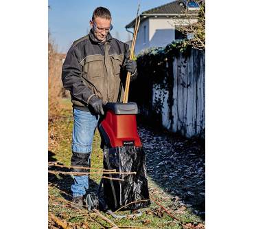 Mit dem GC-KS 2540 von Einhell haben Sie einen soliden Häcksler gefunden, der zuverlässig schneidet. Der 2500-Watt-Motor sorgt dafür, dass dem Gerät nicht so schnell die Puste ausgeht. Für besonders bequemes Einfüllen sorgt der große Trichter. Durch die Trichteröffnung haben sogar Äste bis 40 mm gut Platz. Der Häcksler eignet sich vor allem für robuste Materialien, denn die Wendemesser sind äußerst scharf und stabil. Bei weicheren zu häckselnden Materialien kann es zu Verstopfungen kommen, die Sie jedoch mit wenigen Handgriffen leicht wieder lösen können. Für die Reinigung können Sie den mit einer Sicherheitsverriegelung ausgestatteten Trichter abklappen, um den Häcksler unkompliziert von den Rückständen zu befreien.