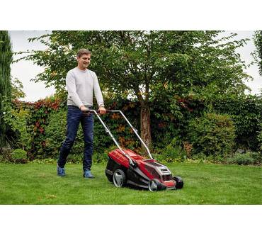 Im Wettstreit mit acht weiteren Akku-Rasenmähern hat der Einhell GE-CM 36/36 Li die Nase vorn. Das rot-schwarze Gartengerät überzeugt die Tester vor allem im zuverlässigen Mähen von trockenem, hohem und feuchtem Gras. Fast 400 Quadratmeter können Sie mit einer Akkuladung am Stück mähen - das ist eine ausgesprochen gute Leistung. Dabei wird Ihnen laut Stiftung Warentest die Bedienung leicht fallen - ausgenommen die Erstmontage. Das robuste Gehäuse des Mähers besteht aus hochwertigem Kunststoff und hat einen integrierten Tragegriff, wodurch Sie ihn leichter transportieren können. Angetrieben wird er von einem bürstenlosen Elektromotor, der wartungsarm ist und im Vergleich zu herkömmlichen Kohlebürsten-Motoren eine längere Lebensdauer aufweist. Das Gerät läuft mit zwei 18-Volt-Akkus, die genau wie die Ladestationen im Lieferumfang enthalten sind. Die Akkus haben eine praktische LED-Füllstandsanzeige, wodurch Sie genau beobachten können, wie lange Sie noch arbeiten können. Die Ladezeit beträgt mit zwei Ladegeräten knapp 90 Minuten. Die Schnittbreite beträgt 36 Zentimeter und die Schnitthöhe lässt sich zentral in sechs Stufen zwischen 25 und 75 Millimeter einstellen. Den Führungsholm können Sie auf drei verschiedene Höhen setzen, je nach Ihrer Körpergröße. Außerdem lässt er sich einklappen, wodurch Ihnen die Aufbewahrung erleichtert wird. Allerdings fehlt bei diesem eine Querverstrebung, die ihn instabiler und gegen Verdrehen anfälliger macht. Die dem Preis geschuldete Materialqualität sieht man auch am Akkufach, beim Einstecken der Akkus und am Akkudeckel - alles nicht sehr robust.