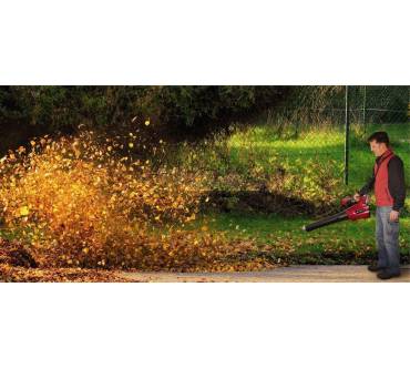 Der Testsieger unter fünf Produkten im Akkulaubbläser-Vergleich des Fachmagazins "Haus & Garten Test" überzeugt mit verstellbarer Blasgeschwindigkeit. Diese können Sie bis zur maximalen Leistung stufenlos an einem drehbaren Regler an der Oberseite des Griffs einstellen. Auch alle anderen Bedienelemente sind gut erreichbar am Gerät angebracht. Für die Inbetriebnahme benötigen Sie zwei 18-Volt-Akkus aus der Akkufamilie Power X-Change des Herstellers, die Sie auch für andere Einhell-Akkugeräte nutzen können. Ein Tragegurt unterstützt Sie bei längeren Arbeitseinsätzen im Garten und beugt einer schnellen Ermüdung vor. Denn der GE-LB 36Li E ist im aktuellen Testumfeld das schwerste Blasgerät, auch wenn er mit seinem Eigengewicht immer noch unter drei Kilogramm bleibt. Größter Kritikpunkt der Tester: ein piependes Geräusch, das sich zusätzlich zum ohnehin lauten Betriebsgeräusch bemerkbar macht.