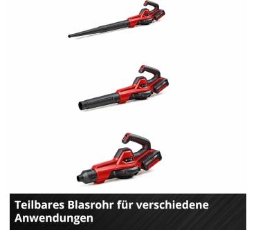 Einhell bietet Ihnen mit dem GE-UB 18/250 Li E einen vielseitigen kleinen Laubbläser, der mit ordentlich Luftgeschwindigkeit Laub und Schmutz auf verschiedenen Untergründen dirigiert. Dafür haben Sie 3 verschieden lange Rohre zur Verfügung und können Hof und Werkstatt säubern oder sogar das Anfeuern des Grills unterstützen. Die Drehzahl regeln Sie je nach Aufgabe individuell elektronisch, die jeweilige Stärke lesen Sie in LED-Balken am Griff ab. Betrieben wird das Gerät mit einem Systemakku, der für viele weitere Werkzeuge des Herstellers nutzbar ist. Eine praktische Aufhängeöse erleichtert das platzsparende Verstauen des Einhells. Durch den Softgriff arbeiten Sie auch längere Zeit bequem, das Gewicht ist mit 1,78 kg gut zu managen. Nutzerberichten hält die Verbindung Rohrteile nicht immer zuverlässig.