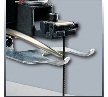 Die Dekupiersäge von Einhell bietet einen schweren mit Beton gefüllten Standfuß und die Option, das Gerät an einer Werkbank zu montieren. Dies führt jedoch häufig zu einer höheren Lautstärke und mehr Vibration. Das Anbringen des Sägeblatts ist ohne Werkzeug möglich und gelingt mit etwas Übung gut. Die mitgelieferten Sägeblätter sind qualitativ schlecht – lieber neue aus dem Baumarkt kaufen. Für eine bessere Sicht auf das Werkstück ist eine Abblasvorrichtung vorhanden, doch diese ist zu schwach, um das Sägemehl zufriedenstellend wegzublasen. Die Drehzahlregelung ist stufenlos möglich, aber der Regler ist nur mit einer dünnen Kunststoffstange befestigt und neigt dazu, abzubrechen. Für den hobbymäßigen Einsatz ist die Säge in Ordnung, für den versierten Heimwerker jedoch nicht.