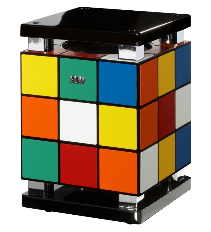 Das Design der Sonderedition (rechtes Bild) ist ganz offensichtlich eine Hommage an den Zauberwürfel von Rubik, der in den 1980er Jahren sehr beliebt war. Wie sein berühmtes Vorbild will uns der MicroSub 2010 BT mit durchdachter Technik verzaubern: Der Übertragungsbereich des aktiven Subwoofers reicht von 36 – 200 Hz, die Verstärkerleistung soll laut Hersteller bei insgesamt 80 Watt (Sinus) liegen. Der Subwoofer arbeitet nach Aussage von Elac vibrationsfrei, weshalb man ihn auch an eher kritischen Stellen aufstellen kann. Im Solo-Betrieb verleiht er Lautsprechern oder Flachbildschirmen mehr Tiefgang, in Kombination mit Satelliten-Lautsprechern kann er auch als komplettes HiFi-System genutzt werden. Dabei lassen sich über die Chinch-Buchsen nicht nur CD- und DVD-Spieler anschließen, sondern auch Notebooks, Computer, MP3- oder Netzwerkplayer. Dank Bluetooth-Schnittstelle und A2DP-Profil empfängt der MicroSub die Audiosignale entsprechender Sendegeräte auf Wunsch auch drahtlos.