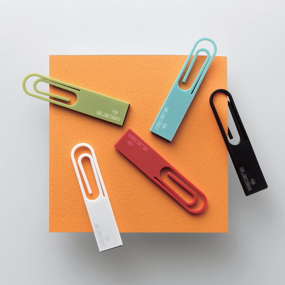 Entwickelt wurde der USB-Stick in Zusammenarbeit mit einem bekannten und mit vielen Auszeichnungen versehenen Design-Büro namens Nendo, deren Mitarbeiter während der Konzeptphase viel mit Büroklammern herumgespielt haben müssen, wie das Endergebnis des kreativen Prozesses eindeutig belegt. Dabei liegt das Büroklammern-Design geradezu auf der Hand: Der Stick lässt sich entweder an Papierstapeln, die von Büro zu Büro wandern oder mit der Post verschickt werden, anklipsen, oder aber auch in der Tasche des Jackets, an Hemd und Bluse – und immer ist die Gefahr, dass der Stick verloren gehen könnte, vergleichsweise gering.