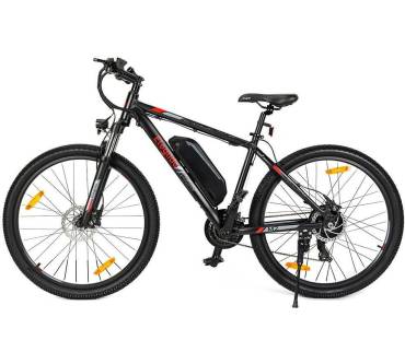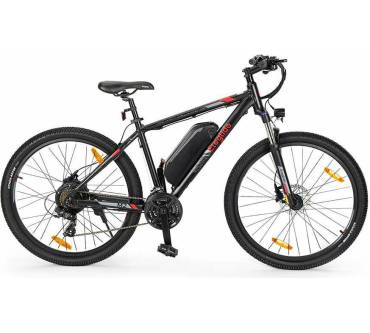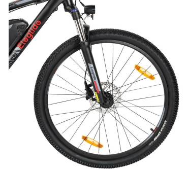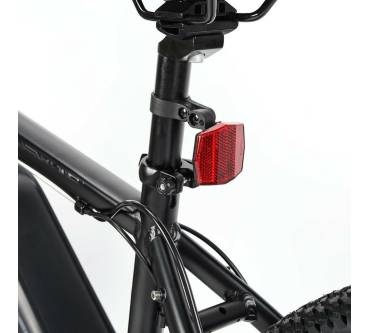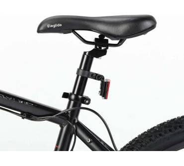 Das Eleglide M2 ist ein kostengünstiges E-Bike mit 27,5-Zoll-Bereifung. Optisch fällt der wuchtige, am Unterrohr montierte Akku auf, der laut Hersteller für eine Reichweite von 125 km sorgen soll. StVO-zugelassen ist das Rad nicht, da zwar ein Frontscheinwerfer vorhanden ist, jedoch das Rücklicht fehlt. Hinten ist nur ein Reflektor angebracht.