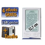 Als E-Book Reader versteht sich der EBX-500.TFT auf die gängigsten eBook-Formate, darunter auch kopiergeschützte (Adobe DRM). Musiktitel im MP3- und WMA-Formate sowie JPEG-, BMP-, PNG- und GIF-Bilder lassen sich ebenfalls betrachten, sogar, wie erwähnt, in Farbe. Zum Lieferumfang gehören eine Ledertasche, Ohrhörer und die Möglichkeit, über Ciando.de kostenlos vier eBooks zu ordern – und dies alles zum sehr günstigen Preis von 117 Euro (Amazon). Wer nicht unbedingt ein Vielleser ist, sondern nur eine preiswerte (und im Funktionsumfang natürlich abgespeckte) Alternative zu einem Tablet-PC für E-Books & Co sucht, sollte sich daher den EBX-500.TFT ruhig einmal aus der Nähe ansehen und über einen Kauf nachdenken.