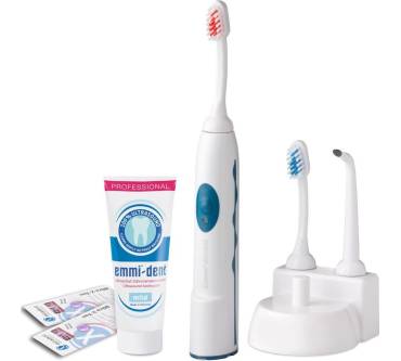 Weniger Zahnfleischbluten, weniger Zahnstein, sauberere Zähne und Zahnzwischenräume und das Ganze mit einer Zahnbürste, die nicht schrubbt: Möglich macht es die Emmi-Dent Emmi-dental Professional Zahnbürste, die mit Ultraschall die Zähne reinigt. Das Design ist nicht besonders schick, sondern kindlich schlicht, fast minderwertig durch den hohen Plastikanteil und die bunten Farben.