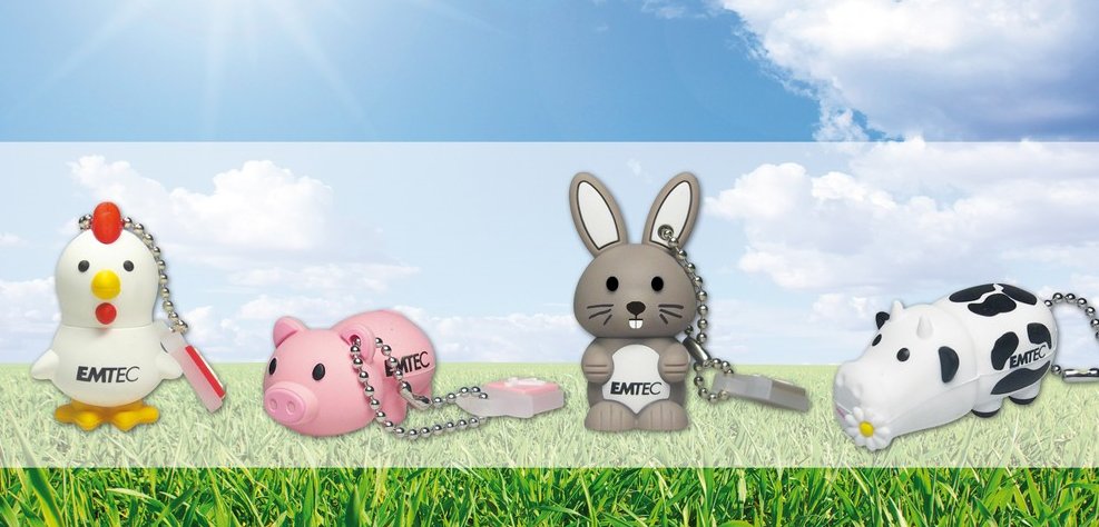 Begonnen hat alles mit einer Zoo-Serie, und im Herbst 2010 legt Emtec nun nach und kündigt eine Farm-Serie an. Gemeint sind USB-Sticks, die so richtig zum Liebhaben, und zwar nicht nur, weil sie statt aus Plastik oder kaltem Metall aus Weichgummi gefertigt sind. Sondern vor allem deshalb, weil sie mit ihren Tiermotiven so richtig ans Herz gehen.