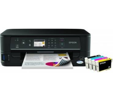 „Druckt günstig und durchweg gut. Die Drucke sind sehr wasser- und lichtbeständig. Drucktempo bei Texten schnell, bei Fotos langsam. Scannt nicht besonders schnell, aber in sehr hoher Qualität. Kopiert Farbseiten gut, Fotos sogar sehr gut. Netzwerkanschluss per Kabel (Lan) und Funk (WLan).“