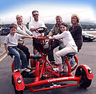 Für einen kreativen Firmenausflug, ein Picknick mit Freunden oder für Im-Liebesleben-Erfolglose toll - denn wenn man so im Kreis sitzend durch die Straßen fährt, muss man ja miteinander reden.
