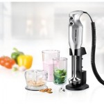 Flexibilität beim Arbeiten bietet auch das gewohnt vielfältige Zubehör. Das ist einer der Gründe, warum der Zauberstab seit Jahrzehnten ein beliebter Küchenhelfer ist. Mit Multimesser, Schlagscheibe und Universal-Zerkleinerer ist man mit dem Zauberstab für alle Küchenarbeiten gut gerüstet. Ein Manko allerdings ist der Preis, der mit 140 Euro (UVP) recht hoch ist. Allerdings bietet Amazon das Gerät zum Preis von gut 90 Euro an.