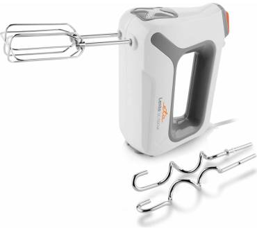 Der preiswerte Handmixer von ETA kommt mit einer Standard-Ausstattung zum Rühren, Kneten und Aufschlagen – und bringt dafür mit 500 Watt eine ordentliche Leistung mit. Knethaken und Rührstäbe sind dabei, weitere Extras gibt es nicht. Diese können aber nachgerüstet werden. Der Mixer bietet vier Geschwindigkeitsstufen, mit knapp 1100 Gramm ist er durchaus noch als leicht zu bezeichnen. Eine ergonomisch geformte Griffmulde sorgt zudem dafür, dass er gut in der Hand liegt. In seiner Preisklasse gehört der Lento Basis zu den leistungsstärksten, viele Geräte haben aber mehr Geschwindigkeitsstufen. Erfahrungsberichte gibt es zu dem Mixer noch nicht.