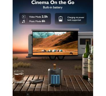 Mitnehm-Tipp. Kompakt, leicht und samt integriertem Akku, der bis zu 2,5 Stunden durchhält. Separate Zuspieler dank Google TV nicht zwingend notwendig. Bild laut Tests gut und hell genug bei moderatem Restlicht. Positiv auch das leise Betriebsgeräusch.