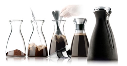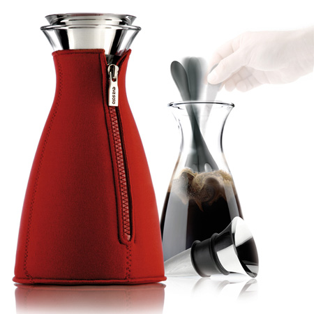 Mehr braucht der Kaffeebereiter CafeSolo von Eva Solo nicht, um einen guten Kaffee zu bereiten. Hier wird Kaffee auf die einfachste Art und Weise gebrüht. So kommt der CafeSolo ohne Druck oder Brühgruppe zurecht und sieht dabei auch noch unverschämt gut aus. Die Zubereitung des Kaffees ist sehr einfach: Man gibt das Kaffeepulver in die Karaffe aus hitzebeständigem Glas und füllt diese mit kochendem Wasser. Das Wasser kühlt sich bei Berührung mit der Kanne auf 94 Grad ab. Das ist die optimale Brühtemperatur. Nun wird mit dem dazugehörenden Kunststoffrührer kräftig gerührt. Danach setzt man den Filtertrichter auf die Karaffe und übt sich weitere 4 Minuten in Geduld. So lange benötigt der Kaffee, um sein volles Aroma entfalten zu können. Nach dieser kurzen wartezeit kann der Kaffee in die Tasse gegossen werden. Durch den Kippdeckel ist das Ausgießen mit einer Hand möglich. Und der Filter hält die Kaffeemehlreste zurück.
