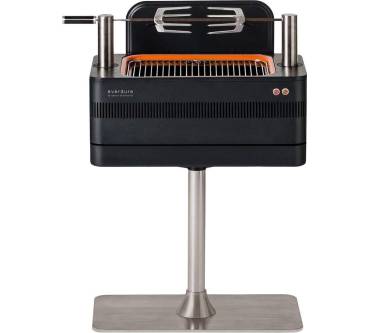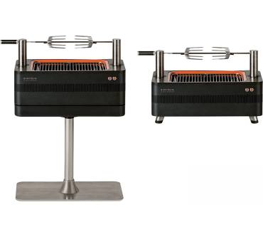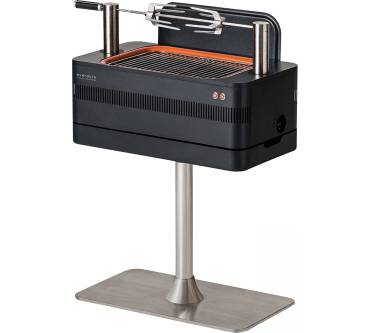 Der Holzkohlegrill von Everdure erinnert optisch an ein ansprechend gestaltetes Möbelstück aus den 60er-Jahren, wobei Ihnen der Grill keineswegs veraltete Technik bietet. Um das Standgerät in Betrieb zu nehmen, füllen Sie lediglich die Grillkohlen ein und setzen die integrierte Heizspirale in Gang. Nach etwa 10 Minuten soll die Kohle dann auf Betriebstemperatur sein und die Heizspirale schaltet sich selbsttätig wieder aus. Ein weiteres Highlight des Grills ist die integrierte Rotisserie, die, ebenso wie die Anheiz-Vorrichtung, komplett im Gehäuse verstaut werden kann. Das Elektrokabel ist ebenfalls mit an Bord und lässt sich wie bei einem Staubsauger ausziehen und wieder einrollen.