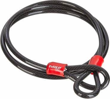 Das zwei Meter lange Schlaufenkabel von Everest Fitness sichert nicht nur Fahrräder an Fahrradständern oder Laternenpfählen, sondern kann auch zum Anschließen von Straßenmobiliar vor einem Geschäft, von Kinderwagen oder von Freizeitgeräten verwendet werden. Der Kern des Kabels besteht aus stabilem Stahl. Zum Schutz vor Kratzern und Schrammen durch das Metall ist eine Ummantelung aus Kunststoff vorhanden. Die Schlaufen sind circa fünf Zentimeter breit, sodass ausreichend Platz zum Durchziehen eines Vorhänge- oder Bügelschlosses ist. Damit sich die Kabelenden nicht lösen können, sind sie zusätzlich mit einer Metallhülse gesichert. Insgesamt scheint die Verarbeitung wirklich gut zu sein, schenkt man den vielen positiven Kundenrezensionen Glauben.