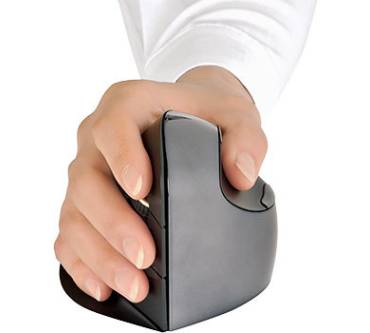 Die VerticalMouse C Right Wireless ist eine echte Vertikalmaus für höchste Ergonomie am Arbeitsplatz und richtet sich an Nutzer, denen eine möglichst natürliche Haltung bei der Arbeit wichtig ist oder die bereits über Schmerzen in Schulter oder Handgelenk klagen. Sie ist ziemlich schwer, wodurch Sie die Maus nicht einfach mit der Hand verschieben können. Dafür bietet sie einen sehr stabilen Halt – alle Finger liegen perfekt auf den Tasten auf. In einem Vergleichstest der c't wird dem Mausrad eine gewisse Unzuverlässigkeit attestiert. Sie können alle Tasten per Software frei belegen, um die Maus besser an Ihre Ansprüche anzupassen. Sie läuft mit einer einzelnen AA-Batterie, was von Vorteil ist, da sie nicht erst aufgeladen werden muss, sollte sie einmal leer sein. Einfach die Batterie wechseln und Sie können weiterarbeiten. Als Linkshänder sollten Sie lieber zur Evoluent Vertical Mouse 4 greifen, welche auch für Linkshänder angeboten wird.