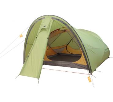 Das vorliegende Trekkingzelt für vier Personen überzeugt durch eine innovative Gestängekonstruktion. Durch die pfiffige Bauweise sind die Wände an allen Seiten sehr steil abfallend – so wird der Innenraum größer und er kann effektiver genutzt werden. Auf einer Schlaffläche von 240 mal 220 Zentimetern dürften vier Personen gemütlich liegen und übernachten können. Zumal das gesamte Gepäck problemlos in der geräumigen Apsis untergebracht werden können. Laut Produktinformationen lassen sich hier sogar Campingstühle aufstellen. Mit einem Gewicht von 5,2 Kilogramm ist das Zelt zwar noch relativ leicht, dafür aber nicht sehr kompakt (60 mal 23 Zentimeter). Der Hersteller gibt für die Aufbauzeit gerade einmal drei Minuten an – somit sollte sich die Trekking-Behausung schnell und unkompliziert aufstellen lassen. Bei einer Wassersäule von 5.000 Millimetern im Bodenmaterial aus PU-beschichtetem Nylon dürfte dafür gesorgt sein, dass keine Feuchtigkeit von unten in das Zelt gelangt.