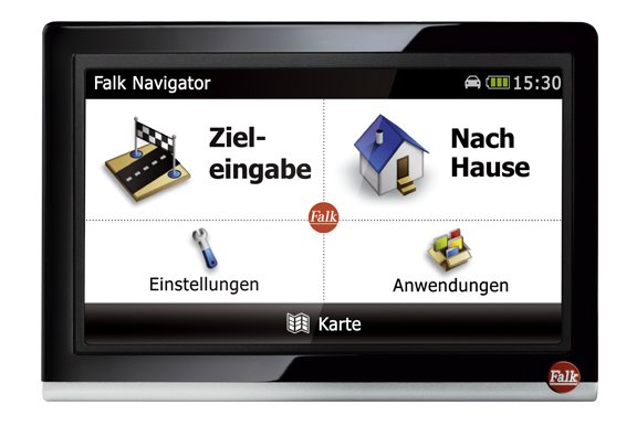 Bei seinem neuen Navi PUR 550 setzt Falk ganz eindeutig hauptsächlich auf Bedienkomfort. Die Tasten und auch die Beschriftung des Menüs sind in XXL-Größe gehalten und fallen daher besonders gut in die Augen – bedenkt man nämlich ferner noch, dass der Bildschirm eine sichtbare Diagonale von 5 Zoll, umgerechnet also nicht ganz 13 Zentimeter, beträgt. Aber auch in puncto Service hat sich der Hersteller etwas Besonderes einfallen lassen.