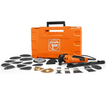 Das Fein MultiMaster FMM 350 Q ist ein leistungsstarkes Oszillationswerkzeug mit einem 350-Watt-Motor, der eine stufenlose Drehzahlregelung von 10.000 bis 19.500 Umdrehungen pro Minute ermöglicht. Es eignet sich für vielfältige Anwendungen wie Trennen, Schleifen und Schaben. Der ergonomische Softgrip und die Vibrationsentkopplung sorgen für komfortables Arbeiten. Im Lieferumfang sind eine Delta-Klettschleifplatte, Deltaschleifpapier, ein Segmentsägeblatt für Metall, ein Schaber, ein Tauchsägeblatt, ein Universalsägeblatt, ein Schleifteller und Schleifblätter enthalten. Das Gerät wiegt 1,4 kg und wird in einem stabilen Koffer geliefert.