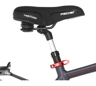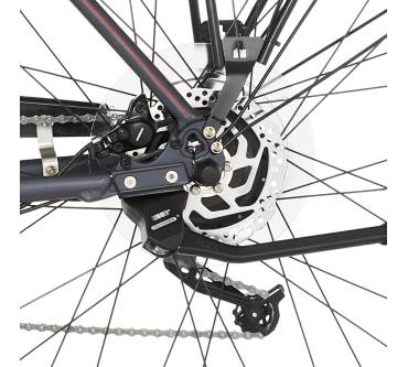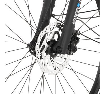 Die montierte Acera-Schaltung von Shimano unterstreicht die Einfachheit einmal mehr und kann in Sachen Schnelligkeit, Genauigkeit und Belastbarkeit nicht mit den teuren Schaltungen mithalten. Zudem fallen der Übersetzungsbereich schmal und die Schaltstufen grob aus. Immerhin: Das Bremssystem arbeitet hydraulisch, was die Dosierbarkeit im Vergleich zu den klassischen Stahlbremszügen verbessert und den Kraftaufwand verringert. Federgabel und gefederte Sattelstütze bieten auf unebenem Terrain Komfort.