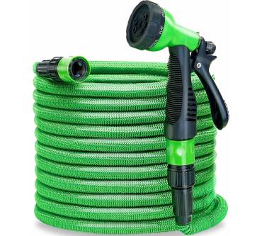 Im zerknitterten Zustand misst die Schlange gerade einmal 2,50 Meter. So kann sie platzsparend verstaut werden. Unter Druck strafft sich der Schlauch auf sieben Meter. Damit ist er als Gartenutensil zu kurz. Er eignet sich jedoch hervorragend für die Nutzung auf dem Balkon und auf der Terrasse.