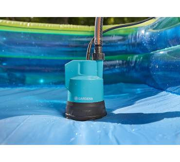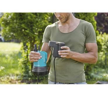 Wenn Sie Wasser unabhängig von einem Stromanschluss fördern bzw. ab- oder umpumpen wollen, ist diese akkubetriebene Klarwasserpumpe von Gardena eine gute Option. Bei einem Maximaldruck von 2 bar können Sie sogar einen Regner anschließen und die entlegeneren Beete oder den Garten im Wochenendhaus bewässern. Dabei stellen Sie individuell ein, wie viel Druck Sie benötigen. In der kleinsten Leistungsstufe arbeitet der Akku natürlich wesentlich länger, laut Nutzerberichten bis zu einer Stunde. Sie müssen auch nicht ständig neben der Pumpe stehen: Mit dem Timer stellen Sie die Laufzeit auf 5, 10 oder 15 Minuten ein. Sollte der Wasserstand unter 5 Millimeter sinken, schaltet das Gerät automatisch ab. Die Gardena wird mit einem markenübergreifenden Systemakku betrieben (nicht im Lieferumfang), sodass Sie auch Werkzeuge anderer Hersteller der „POWER FOR ALL ALLIANCE“ damit betreiben können.