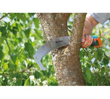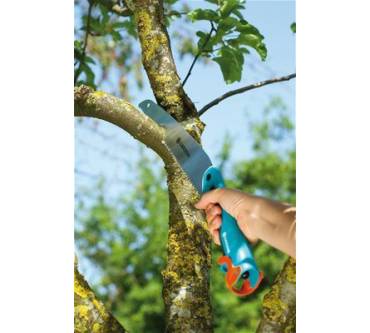 Die gebogene combisystem-Gartensäge 300 PP von Gardena sollte wie schon das Vorgängermodell Gardena combisystem-Gartensäge 560 mit einer hervorragenden Schnittleistung bestechen. Erwirbt man noch einen passenden Teleskopstiel aus dem Combisystem des Herstellers dazu, ist auch ohne Leiter in der Krone des Obstbaums in bis zu fünf Meter Höhe kein Ast vor ihr sicher.