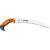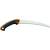 Eine Softkomponente am Griff und ein Stopp am hinteren Ende des Griffs verhindern das Abrutschen der Hand beim Ziehen. Der Räumhaken am vorderen Ende des Sägeblatts hilft beim Entfernen abgeschnittener Äste und kann bei einer Arbeitspause zum Aufhängen des Geräts dienen. Die Oberfläche des Geräts ist hart verchromt und somit bestens gegen Korrosion und Verschleiß geschützt. Außerdem ist die impulsgehärtete Zugzahnung des Blattes dreifach geschliffen, geschränkt und spart Kraft beim Sägen auf Zug. Bei der Impulshärtung wird der Stahl mit einem Laser an den geschliffenen Zahnrillen für extrem kurze Zeit stark erhitzt und durch das umgebene Material sofort wieder abgekühlt. Das macht den Schliff besonders widerstandsfähig und langlebig. Das gebogene Blatt verhilft der Säge zudem zu einem leichten Handling. Mit der Blattlänge von 30 Zentimetern sollte man auch noch in dichtem Astgestrüpp bequem manövrieren können.