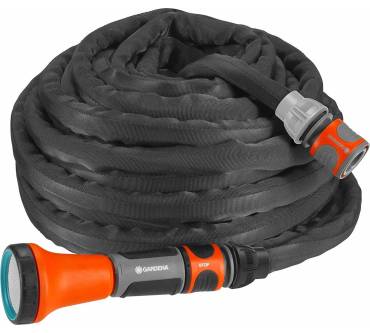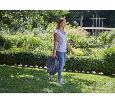 Mit dem Liano Set bringt Gardena einen besonders flexiblen Gartenschlauch auf den Markt und gibt auf diesen gleich stolze 30 Jahre Garantie. Das lässt hohe Erwartungen aufkommen, die sich in begeisterten Nutzerbewertungen zu bestätigen scheinen. Sie können mit dem Liano durch Rosenbeete oder um Ecken marschieren, er wird laut Hersteller nicht knicken oder reißen. Der Innenschlauch ist mit einem Textilgewebe ummantelt, das alle Ihre Manöver mitmacht. Bei einem möglichen Druck von bis zu 35 bar schließen Sie problemlos Ihren Hochdruckreiniger an. Nach Gebrauch können Sie den Schlauch dank seiner Flexibilität leicht transportieren und verstauen; er zieht sich aber nicht wie andere Flexischläuche zusammen. Auch auf dem Schlauchwagen findet er gut Platz. Das Set wird mit allen Anschlüssen sowie einer Reinigungsspritze geliefert und ist in verschiedenen Längen verfügbar.