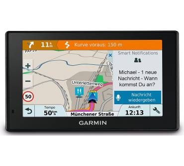 In diesem Punkt ist das 51LMTD jedenfalls besser ausgestattet, als etwa das in der gleichen Preisklasse angesiedelte Via 53 des Konkurrenten TomTom, bei dem Verkehrsinfos ausschließlich über ein gekoppeltes Smartphone eingespielt werden können. Das DriveSmart von Garmin lässt sich im übrigen auch per Sprache bedienen, allerdings ist es im Gegensatz zum Via nicht kompatibel mit den Sprachassistenten Apple Siri und Google Now bzw. Assistant. Dennoch machen Sprachsteuerung und verschiedene Smart-Funktionen das Fahren erheblich sicherer, da die Hände immer am Lenkrad bleiben können.