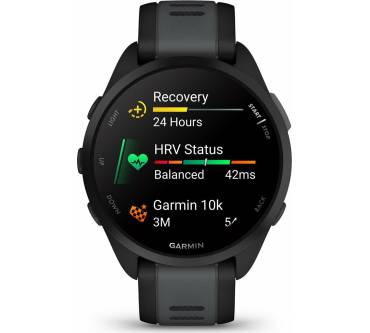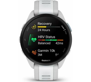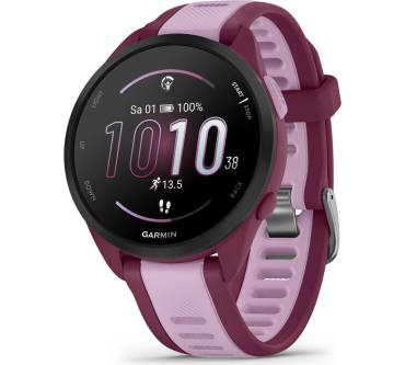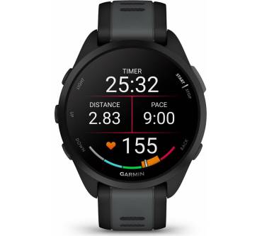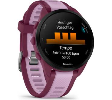 Trotzdem bietet sie eine Vielzahl an Sportprofilen und Unterstützung für externe Sensoren. Die Forerunner 165 verfügt über einen 1,2-Zoll-OLED-Touchscreen und fünf Tasten zur Navigation. Der Bildschirm kann auf Wunsch im Always-On-Modus betrieben werden und bietet ausreichende Helligkeit sowohl bei hellem Sonnenlicht als auch in dunklen Umgebungen.