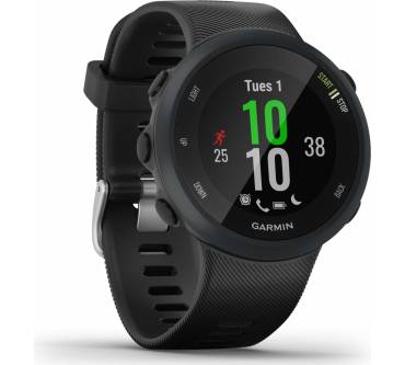 Die Forerunner 45 ist ein erstklassiger Begleiter, wenn Sie ein ambitionierter Läufer sind. Trainingspläne können bei ihr direkt auf der Uhr abgespeichert und mitgetrackt werden. Alle für professionelles Lauftraining erforderlichen Funktionen sind vorhanden: Ein Pulsmesser sowie GPS für die Aufzeichnung der Routen. Hinzu kommen praktische Extras wie eine Unfall-Erkennung inklusive Notfallhilfe und eine handvoll Smartwatch-Funktionen runden das Paket ab. Rund ist auch das Gehäuse – und leider relativ groß, sodass die Uhr auf schmalen Handgelenken etwas stark aufträgt. Mit nur 32 g Gewicht fällt sie aber immerhin sehr leicht aus. Das Display ist kontrastreich und gut ablesbar. Die Bedienung erfolgt nicht per Touchscreen, sondern nur über Tasten.