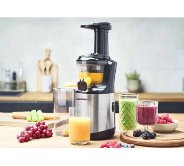 Technikzuhause.de lässt den Gastroback Advanced Vital im Vergleichstest gegen acht Konkurrenten antreten. Das Ergebnis: ein solide verarbeitetes, ruhiges Einsteigermodell mit überzeugender Funktionsweise und einfacher Bedienung. Besonders den feinmaschigen Siebkorb und den robusten Presskegel sehen die Tester als Pluspunkt. Allerdings weisen sie darauf hin, dass die Konsistenz weniger an Saft und eher an einen Smoothie erinnert. Ebenfalls positiv bewerten sie die geringe Betriebslautstärke und die Möglichkeit, das Gerät bis zu 15 Minuten am Stück zu nutzen. Beim Zerlegen und Zusammenbauen des Entsafters werden Sie von hilfreichen Markierungen unterstützt, wie Tester berichten. Die Reinigung der einzelnen Teile kann in der Spülmaschine erfolgen. Kritik üben die Tester nur an der Öffnung zum Einfüllen: diese ist mit 4,4 x 3,7 Zentimetern nur für kleine Obst- und Gemüsestücke geeignet.