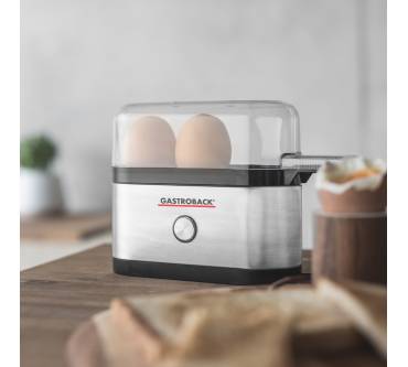 Der Gastroback Design Eierkocher Mini ermöglicht die schnelle Zubereitung von bis zu drei Eiern gleichzeitig. Mit einer Leistung von 350 Watt und einem praktischen Messbecher mit Skala für weiche, mittlere oder harte Eier bietet er eine benutzerfreundliche Handhabung. Ein Eierpiker ist im Lieferumfang enthalten, und der beleuchtete An-/Ausschalter sowie die automatische Abschaltung mit akustischem Signal erhöhen die Sicherheit. Das moderne Edelstahl-Design ist platzsparend und leicht zu reinigen.