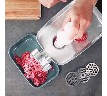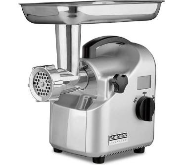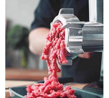 Der Gastroback Design Fleischwolf Advanced verspricht nicht nur aufgrund seines Namens, sondern auch mit einem beachtlichen Preis von über 300 Euro ein Küchengerät für Fortgeschrittene zu sein. Mit einer Materialverarbeitung von 100 Kilogramm in der Stunde scheint er sich eher für den gewerblichen Bereich zu eignen als für den normalen Gebrauch im Haushalt, der in den allermeisten Fällen wohl ohne die massenhafte Zubereitung von Gehacktem auskommen sollte. Auch die kolossale, drehbare Edelstahl-Einfüllschale deutet darauf hin, dass der Küchenhelfer für die effiziente Verarbeitung von großen Mengen ausgelegt ist. Dass der Design Fleischwolf so leistungsstark ist, verdankt er unter anderem einem 350 Watt leistungsstarken Profi-Motor und einem vierflügeligen Edelstahl-Kreuzmesser, das sich in seinem Inneren befindet. Ein klarer Vorteil gegenüber Geräten mit nur zweiflügeligem Messer. Mit einem Drehschalter, der die Funktionen An resp. Aus, sowie eine Reverse-Funktion für Steckengebliebenes beinhaltet, gestaltet sich die Bedienung des Fleischwolfs äußerst intuitiv. Positiv hervorzuheben ist auch, dass das Gerät im Gegensatz zu vielen Konkurrenten am Markt mit einer gut lesbaren Digitalanzeige kommt, die die Laufrichtung und Leistungsaufnahme darstellen kann. Negativ stößt bei den horrenden Anschaffungskosten auf, dass Lochscheiben und Wurstaufsätze lediglich optional aufgerüstet werden können, worüber sich einige Rezensentinnen und Rezensenten im Internet zu Recht beschweren. Ebenso bemängeln einige, dass der als leistungsstark angepriesene Motor nach kurzer Zeit heiß laufe. Obwohl über die Hälfte der Nutzerinnen und Nutzer mit dem Gerät zufrieden ist, können günstigere Modelle empfohlen werden, die in Testberichten gute Leistung zeigten, wie beispielsweise der Bosch MFW68660 ProPower, der bereits für den halben Preis erhältlich ist.