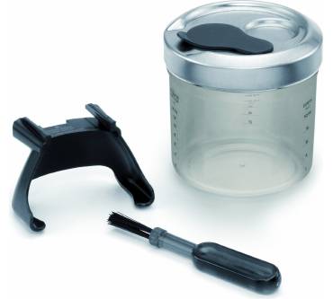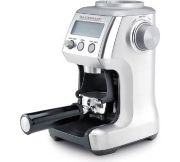 Geradezu einen üppigen Zuwachs hat außerdem der Bohnenbehälter erfahren: von vormals 170 Gramm Fassungsvermögen auf nunmehr 450 Gramm. Die Maschine bietet sich daher insbesondere für rege Espresso- und Kaffeetrinker an. Ferner wurde die Neue mit einem LC-Display ausgestattet, auf dem wichtige Informationen über Mahlgradeinstellung, Anzahl der Tassen sowie die Mengenfeinjustierung auf einen Blick abgelesen werden können – in der Praxis ein nicht zu unterschätzender Vorteil gegenüber der Vorgängerin. Nach wie vor arbeitet in der Gastroback ein Kegelmahlwerk, außerdem kann entweder direkt in einen Siebträger (zwei Adapter für 50/54 Millimeter und 58 Millimeter gehören zum Lieferumfang) oder in den Auffangbehälter gemahlen werden.