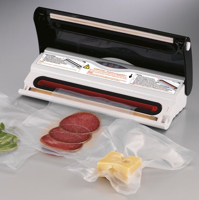 Vakuumierte Lebensmittel halten sich nicht nur länger, sie bleiben auch, etwa wenn sie eingefroren werden, länger frisch im Geschmack. Außerdem reduziert das Vakuumieren von Gefrierbeuteln den Platzbedarf in der Tiefkühltruhe. Ein Vakuumierer ist daher immer dann ein Gewinn in der Küche, wenn Lebensmittel oder gekochte Speisen häufig eingefroren werden. Über Amazon kann das kinderleicht bedienbare und dazu optisch doch recht gelungene Gerät für rund 90 Euro bestellt werden.